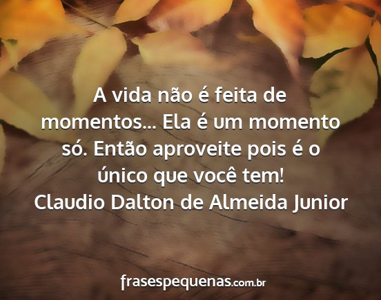 A vida não é feita de momentos... Ela é um momento só. Então aproveite pois é o único que você tem!Claudio Dalton de Almeida Junior