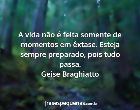 A vida não é feita somente de momentos em êxtase. Esteja sempre preparado, pois tudo passa.Geise Braghiatto