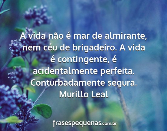A vida não é mar de almirante, nem céu de brigadeiro. A vida é contingente, é acidentalmente perfeita. Conturbadamente segura.Murillo Leal