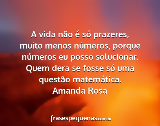 A vida não é só prazeres, muito menos números, porque números eu posso solucionar. Quem dera se fosse só uma questão matemática.Amanda Rosa