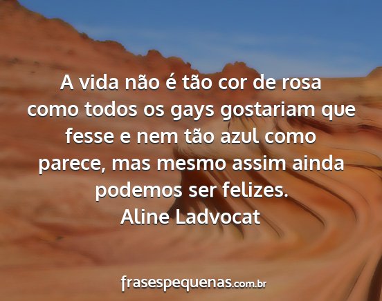 A vida não é tão cor de rosa como todos os gays gostariam que fesse e nem tão azul como parece, mas mesmo assim ainda podemos ser felizes.Aline Ladvocat