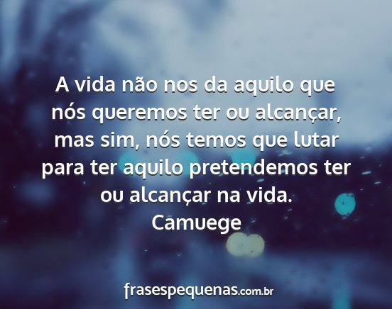 A vida não nos da aquilo que nós queremos ter ou alcançar, mas sim, nós temos que lutar para ter aquilo pretendemos ter ou alcançar na vida.Camuege