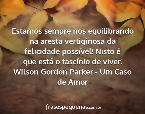 Estamos sempre nos equilibrando na aresta vertiginosa da felicidade possível! Nisto é que está o fascínio de viver.Wilson Gordon Parker - Um Caso de Amor