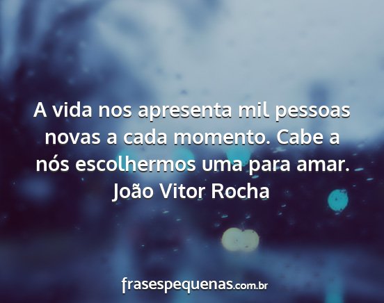 A vida nos apresenta mil pessoas novas a cada momento. Cabe a nós escolhermos uma para amar.João Vitor Rocha