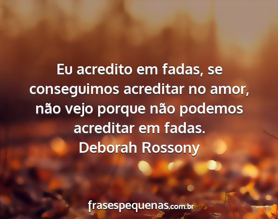 Eu acredito em fadas, se conseguimos acreditar no amor, não vejo porque não podemos acreditar em fadas.Deborah Rossony