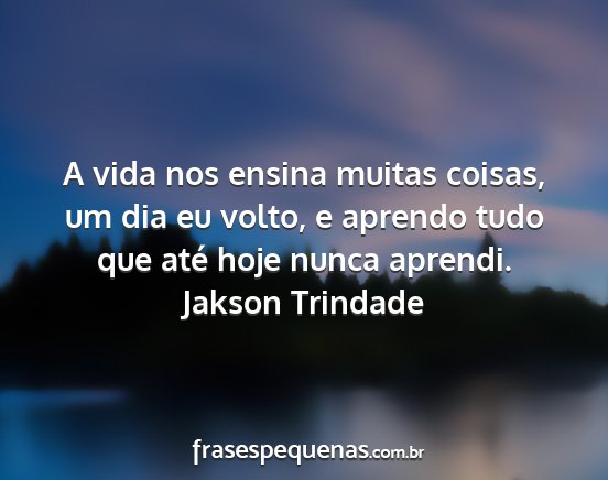 A vida nos ensina muitas coisas, um dia eu volto, e aprendo tudo que até hoje nunca aprendi.Jakson Trindade