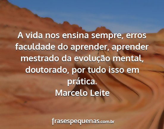 A vida nos ensina sempre, erros faculdade do aprender, aprender mestrado da evolução mental, doutorado, por tudo isso em prática.Marcelo Leite