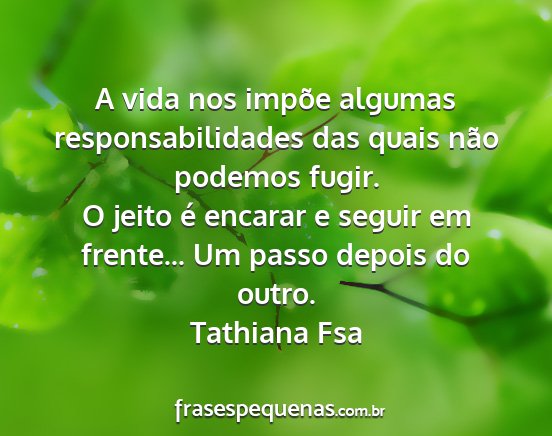O jeito é encarar e seguir em frente... Um passo depois do outro.Tathiana Fsa