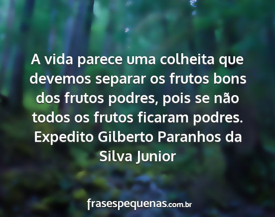 A vida parece uma colheita que devemos separar os frutos bons dos frutos podres, pois se não todos os frutos ficaram podres.Expedito Gilberto Paranhos da Silva Junior