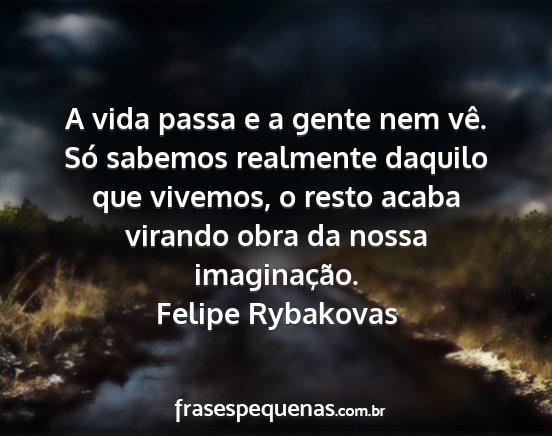 A vida passa e a gente nem vê. Só sabemos realmente daquilo que vivemos, o resto acaba virando obra da nossa imaginação.Felipe Rybakovas
