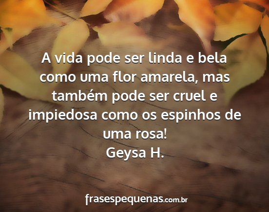 A vida pode ser linda e bela como uma flor amarela, mas também pode ser cruel e impiedosa como os espinhos de uma rosa!Geysa H.