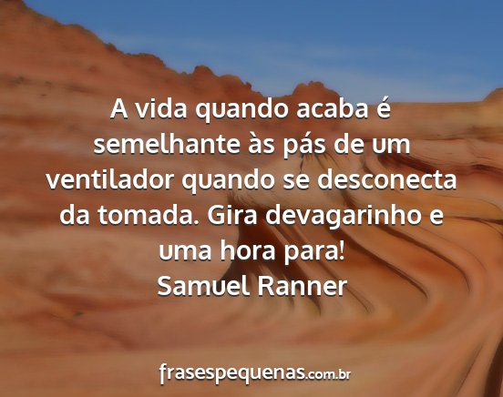 A vida quando acaba é semelhante às pás de um ventilador quando se desconecta da tomada. Gira devagarinho e uma hora para!Samuel Ranner
