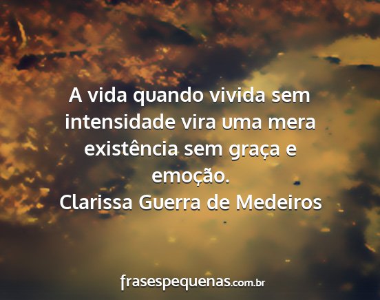A vida quando vivida sem intensidade vira uma mera existência sem graça e emoção.Clarissa Guerra de Medeiros