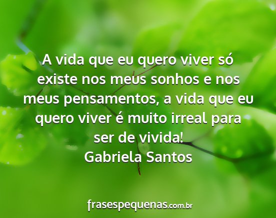 A vida que eu quero viver só existe nos meus sonhos e nos meus pensamentos, a vida que eu quero viver é muito irreal para ser de vivida!Gabriela Santos
