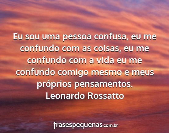 Eu sou uma pessoa confusa, eu me confundo com as coisas, eu me confundo com a vida eu me confundo comigo mesmo e meus próprios pensamentos.Leonardo Rossatto