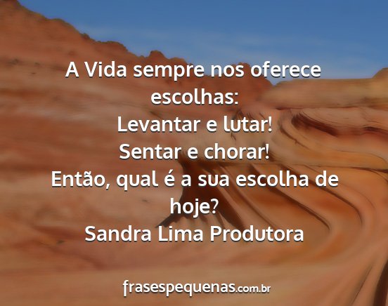 Então, qual é a sua escolha de hoje?Sandra Lima Produtora