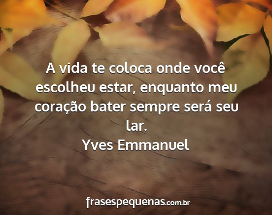 A vida te coloca onde você escolheu estar, enquanto meu coração bater sempre será seu lar.Yves Emmanuel