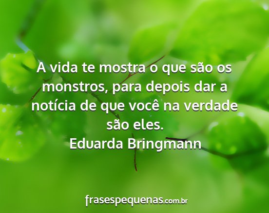 A vida te mostra o que são os monstros, para depois dar a notícia de que você na verdade são eles.Eduarda Bringmann