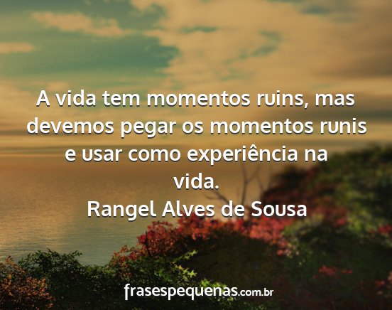A vida tem momentos ruins, mas devemos pegar os momentos runis e usar como experiência na vida.Rangel Alves de Sousa