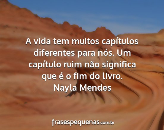 A vida tem muitos capítulos diferentes para nós. Um capítulo ruim não significa que é o fim do livro.Nayla Mendes