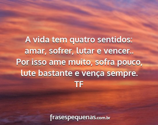 A vida tem quatro sentidos: amar, sofrer, lutar e vencer.. Por isso ame muito, sofra pouco, lute bastante e vença sempre.TF