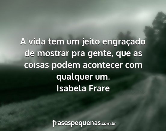 A vida tem um jeito engraçado de mostrar pra gente, que as coisas podem acontecer com qualquer um.Isabela Frare