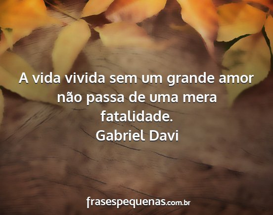 A vida vivida sem um grande amor não passa de uma mera fatalidade.