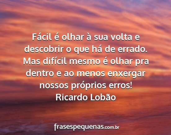 Fácil é olhar à sua volta e descobrir o que há de errado. Mas difícil mesmo é olhar pra dentro e ao menos enxergar nossos próprios erros!Ricardo Lobão