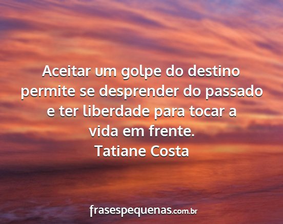 Aceitar um golpe do destino permite se desprender do passado e ter liberdade para tocar a vida em frente.Tatiane Costa