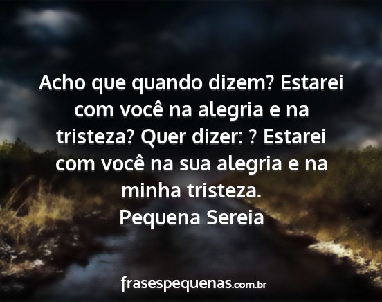 Acho que quando dizem? Estarei com você na alegria e na tristeza? Quer dizer: ? Estarei com você na sua alegria e na minha tristeza.Pequena Sereia