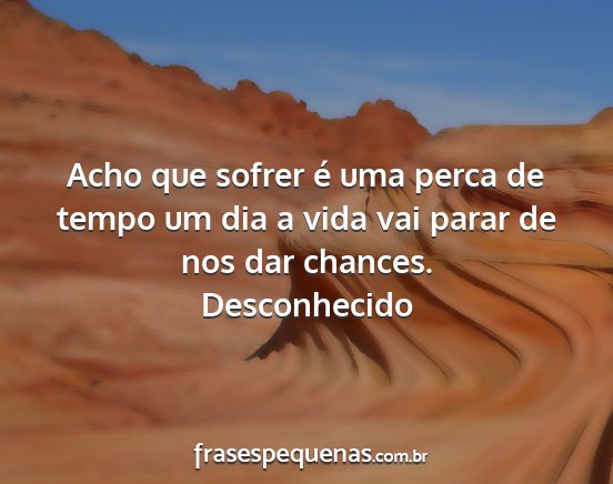 Acho que sofrer é uma perca de tempo um dia a vida vai parar de nos dar chances.