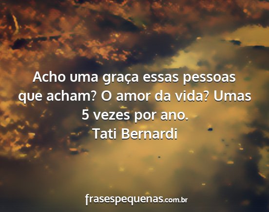 Acho uma graça essas pessoas que acham? O amor da vida? Umas 5 vezes por ano.