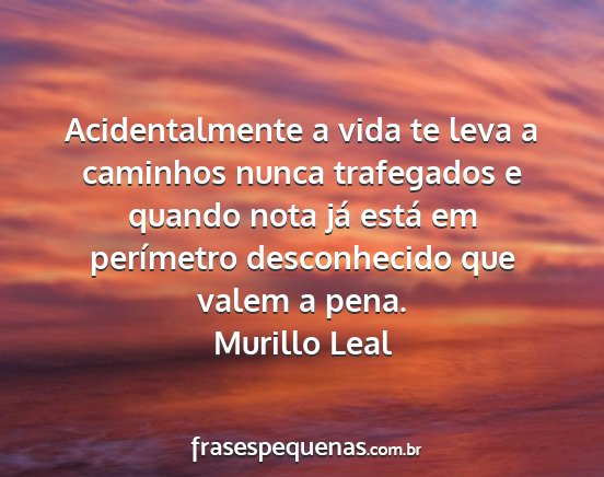 Acidentalmente a vida te leva a caminhos nunca trafegados e quando nota já está em perímetro desconhecido que valem a pena.Murillo Leal