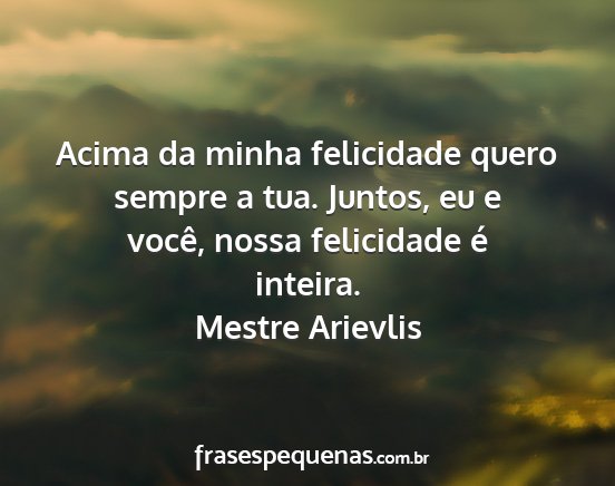 Acima da minha felicidade quero sempre a tua. Juntos, eu e você, nossa felicidade é inteira.Mestre Arievlis