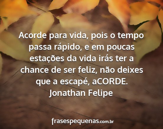 Acorde para vida, pois o tempo passa rápido, e em poucas estações da vida irás ter a chance de ser feliz, não deixes que a escapé, aCORDE.Jonathan Felipe