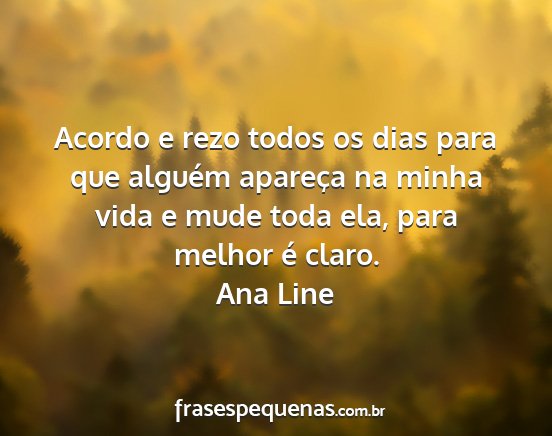 Acordo e rezo todos os dias para que alguém apareça na minha vida e mude toda ela, para melhor é claro.Ana Line