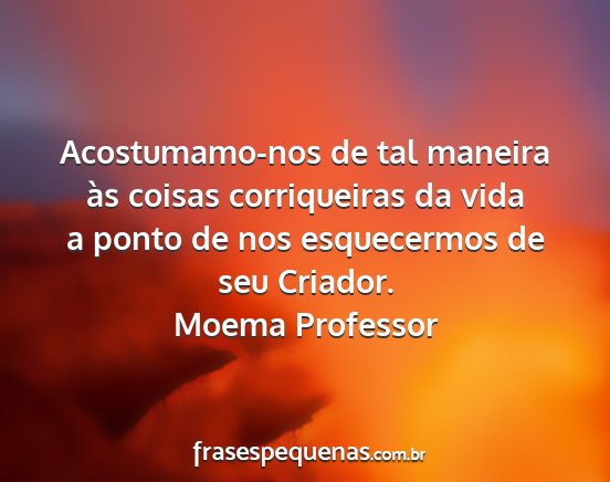 Acostumamo-nos de tal maneira às coisas corriqueiras da vida a ponto de nos esquecermos de seu Criador.Moema Professor
