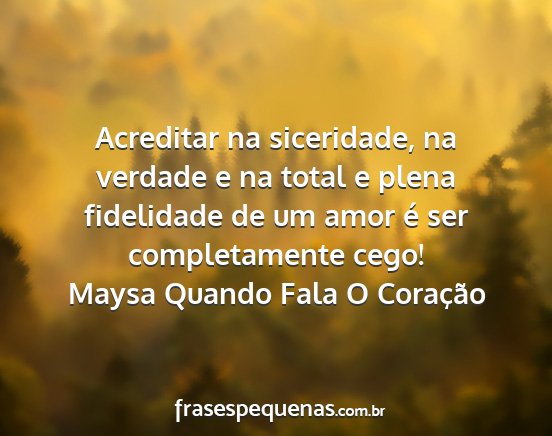 Acreditar na siceridade, na verdade e na total e plena fidelidade de um amor é ser completamente cego!Maysa Quando Fala O Coração