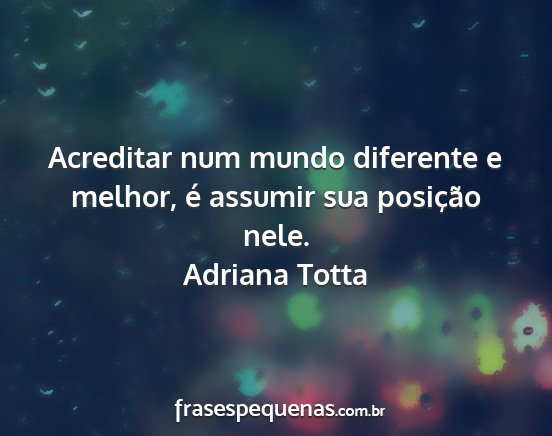 Acreditar num mundo diferente e melhor, é assumir sua posição nele.