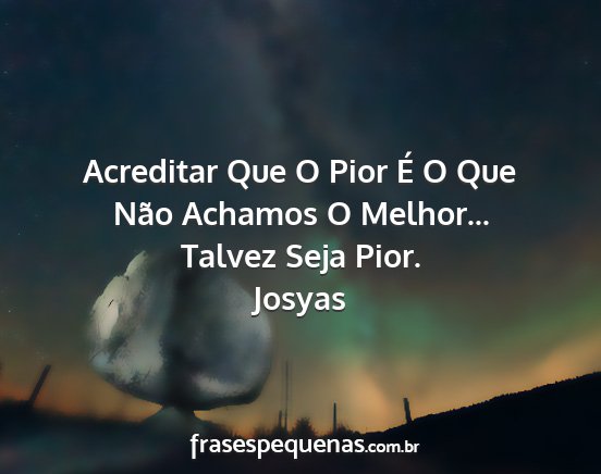 Acreditar Que O Pior É O Que Não Achamos O Melhor...