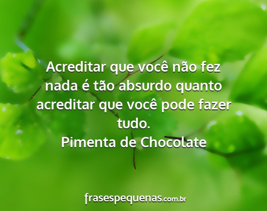 Acreditar que você não fez nada é tão absurdo quanto acreditar que você pode fazer tudo.Pimenta de Chocolate