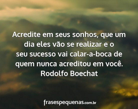 Acredite em seus sonhos, que um dia eles vão se realizar e o seu sucesso vai calar-a-boca de quem nunca acreditou em você.Rodolfo Boechat