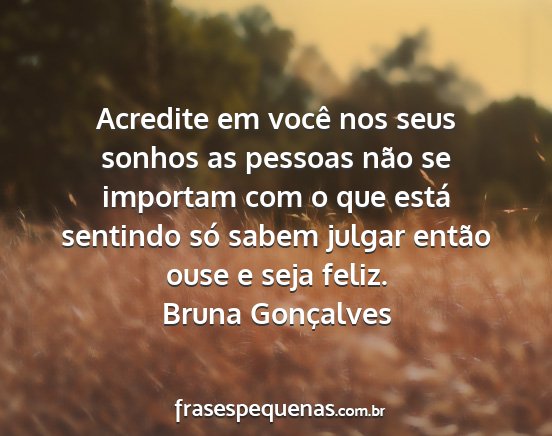 Acredite em você nos seus sonhos as pessoas não se importam com o que está sentindo só sabem julgar então ouse e seja feliz.Bruna Gonçalves