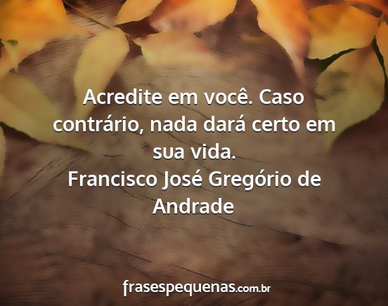 Acredite em você. Caso contrário, nada dará certo em sua vida.