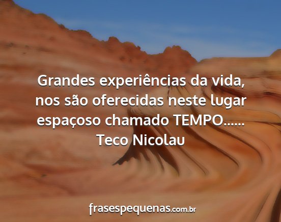 Grandes experiências da vida, nos são oferecidas neste lugar espaçoso chamado TEMPO......Teco Nicolau