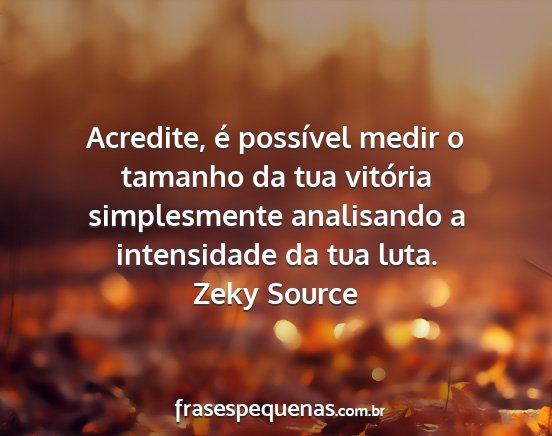Acredite, é possível medir o tamanho da tua vitória simplesmente analisando a intensidade da tua luta.Zeky Source