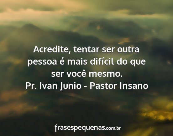 Acredite, tentar ser outra pessoa é mais difícil do que ser você mesmo.Pr. Ivan Junio - Pastor Insano