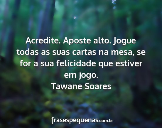 Acredite. Aposte alto. Jogue todas as suas cartas na mesa, se for a sua felicidade que estiver em jogo.Tawane Soares