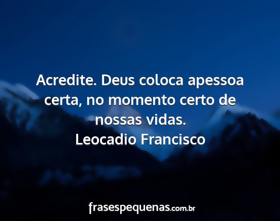Acredite. Deus coloca apessoa certa, no momento certo de nossas vidas.