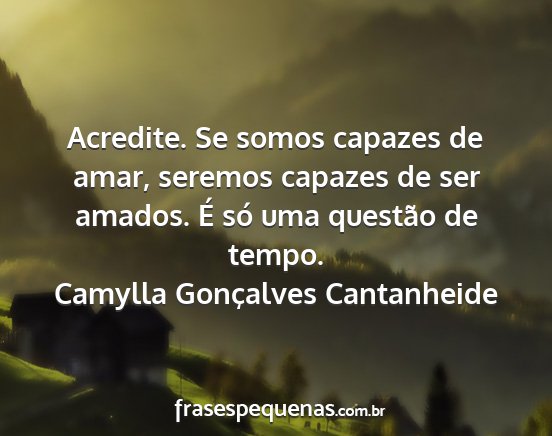 Acredite. Se somos capazes de amar, seremos capazes de ser amados. É só uma questão de tempo.Camylla Gonçalves Cantanheide